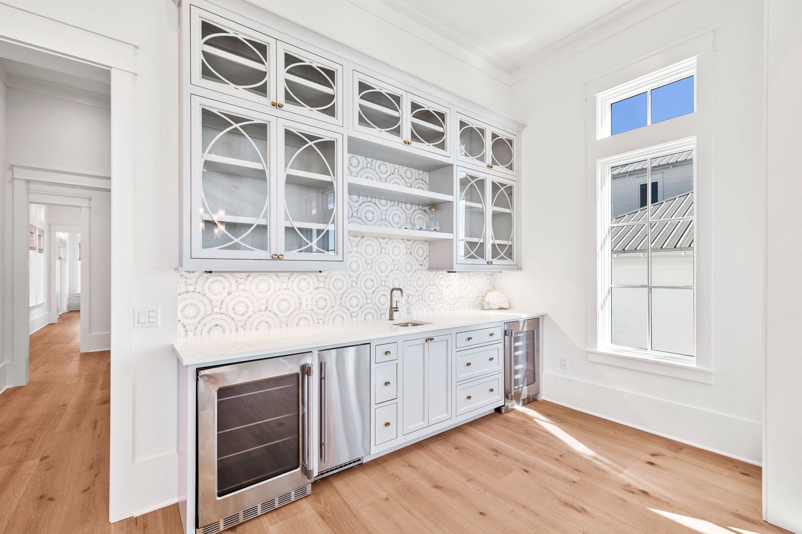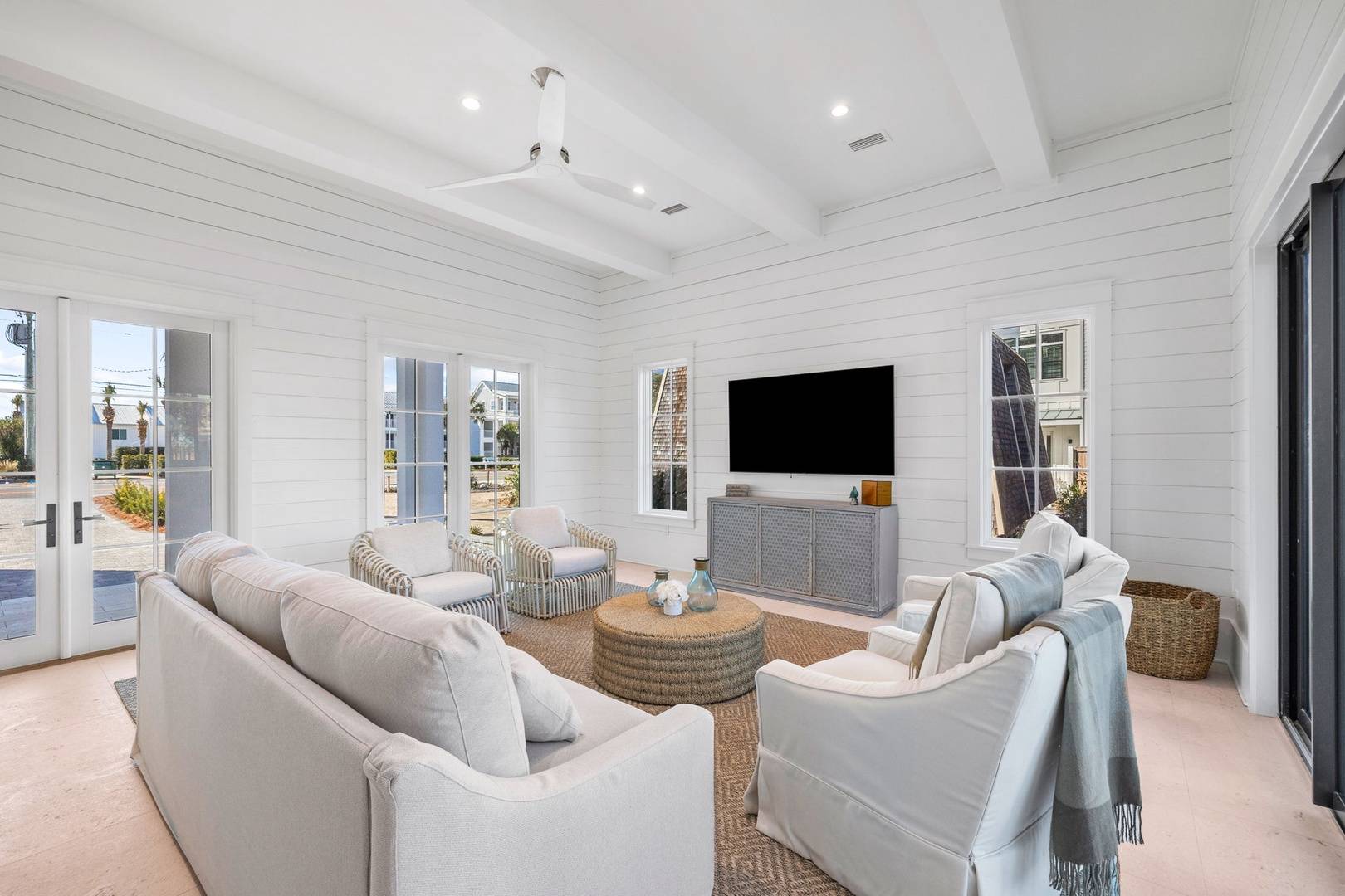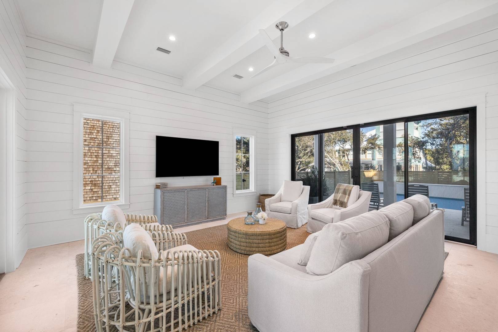 Interior First Floor: Pool Level Secondary Living Space Opening to Lanai and Outdoor Grilling Area